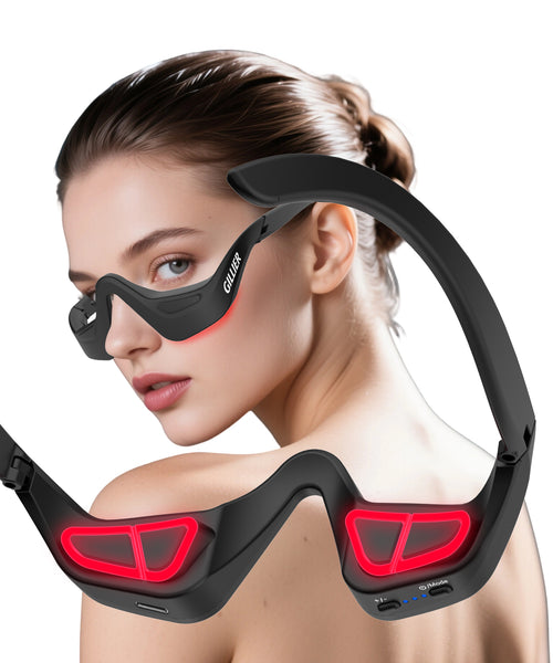 Eye Red Light Therapy Glasses, 7-Color LED Microcurrent Eye Massager for Eye Bags, Dark Circles, Wrinkles & Fine Lines, Red Light Therapy for Eyes, 3 Modes